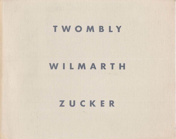 (Twombly, Cy): Twombly – Wilmarth – Zucker. Cy Twombly, Christopher Wilmarth, Joe Zucker. Erste Auflage. New York. Hirschl & Adler. 1986. 21,5 x 26,5 cm. 32 unpaginierte S. OKarton. Einbandkanten etwas lichtrandig und mit kleinen Bereibungen, Umschlag minimal gewellt. Gutes Exemplar. Katalog zur Gemeinschaftsausstellung New York 21. Mai bis 27. Juni 1986 durchgehend mit Abbildungen zum Werk der drei Künstler sowie Kurzbio- und bibliographien versehen. Text in englischer Sprache.