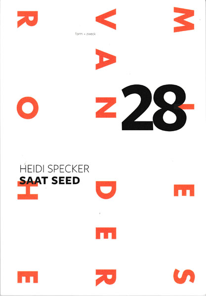Specker, Hidi: Saat Seed. Auflage 500 Exemplare. Berlin. Mies van der Rohe Haus. 2017. 23 x 16 cm. 64 unpaginierte S. Illustrierter OKarton. Sehr gutes Exemplar. Katalog zur Ausstellung Berlin 22. 1. bis 26. 3. 2017 mit ganzseitigen Abbildungen versehen.