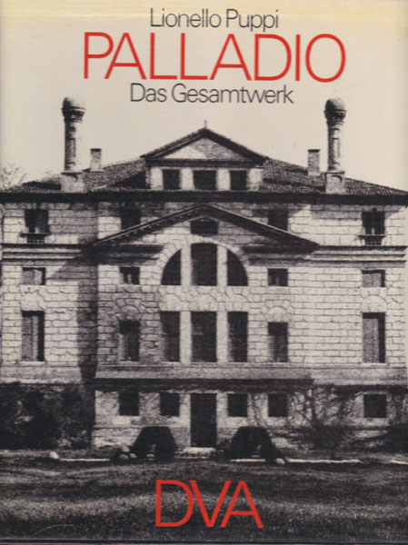 Palladio, Andrea – Lionello Puppi: Andrea Palladio. Das Gesamtwerk. Erste Auflage. 2 Bände. Stuttgart. Deutsche Verlags-Anstalt. 1977. 29 x 25,5 cm. 467 S. OLeinen mit illustrierten OUmschlägen in illustriertem OPappschuber. Umschläge am Rücken gegilbt, Schuber etwas angestaubt und an der unteren hinteren Falz angeplatzt. Sonst gutes Exemplar. Umfangreiche, zweibändige Monographie durchgehend mit Abbildungen – Fotografien, Zeichnungen, Pläne – versehen.