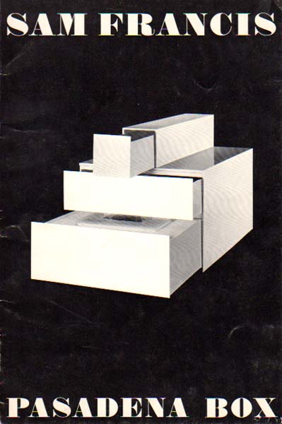Francis, Sam: Pasadena-Box. 1. Auflage. Bern. Kornfeld und Klipstein. 1968. 23 x 15 cm. 30 S., 1 Blatt. OKarton. Stempel auf Vorsatz. Ordentliches Exemplar. Präsentationskatalog der Pasadena-Box mit 11 schwarz-weiß Abbildungen und einem Text von Eberhard W. Kornfeld. Die Box besteht aus einem Plastikkasten in drei Etagen mit Schubladen, enthalten eine Goauche, ein Wandschirm aus drei Farblithographien, eine Lithographie als japanisches Rollenbild und 8 Farblithos. Titel mit Kollophonüberkleber „Galerie Stangl, München“, ebenso auf Vortitel gestempelt.