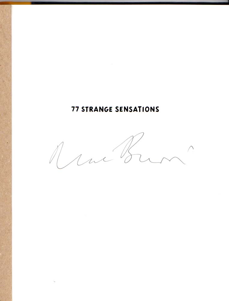 Burri, Rene: 77 STRANGE SENSATIONS. STORY BY BARRY GIFFORD. Auflage: 3000 nummerierte Exemplare. Zurich. SIMONETTprojects. 1998. 30 x 23 cm. [72] unpaginierte S. OHalbleinen. Kleiner Abrieb am hinteren Einband, kleiner Abklatsch von Etikett am vorderen Einband, sonst sehr gutes Exemplar. Auf dem Vorsatz handschriftlich von Rene Burri signiert. Nummer 1069 von 3000 (auf dem vorderen Innendeckel) nummerierten Exemplaren. Durchgehend mit schwarz-weiß Abbildungen versehen. Text in Englisch.