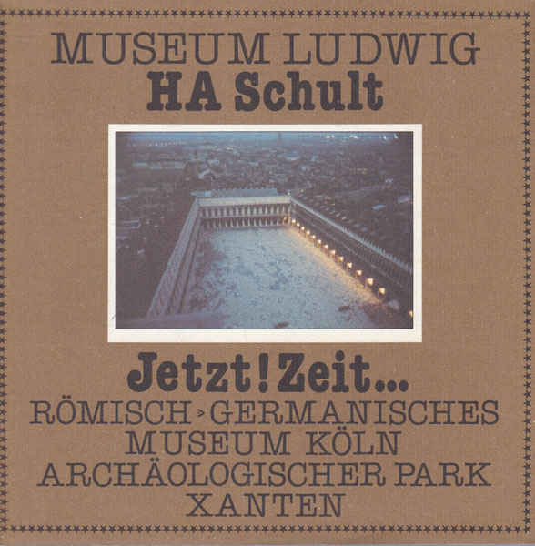 Schult, HA: Jetzt! Zeit… Museum Ludwig, Köln [und] Römisch-Germanisches Museum, Köln [und] Archäologischer Park, Xanten, 15. August bis 15. September 1980. Erste Auflage. Brauweiler. Rheinland-Verlag. 1980. 22 x 22 cm. 16 unpaginierte S. Illustrierte OBroschur. Einbandkanten etwas nachgedunkelt und mit kleinen Bereibungen. Sonst gutes bis sehr gutes Exemplar. Mit Textbeiträgen von Hugo Borger, Volker Hauff, Karl Ruhrberg, Evelyn Weiss und Klaus Honnef. Enthält einige Abbildungen, davon 1 in Farbe.