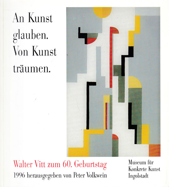 Vitt, Walter: An Kunst glauben. Von Kunst träumen. Walter Vitt zum 60. Geburtstag. 1996 herausgegeben von Peter Volkwein. Erste Auflage. Ingolstadt. Museum für konkrete Kunst. 1996. 24 x 22 cm. 220 S. Illustrierter OKarton. Einbandkanten etwas nachgedunkelt und mit kleinen Bereibungen, Aiufkleber eines deutschen Kunstvereins im vorderen Innendeckel. Gutes Exemplar. Mit schwarz-weiss Abbildungen versehen.