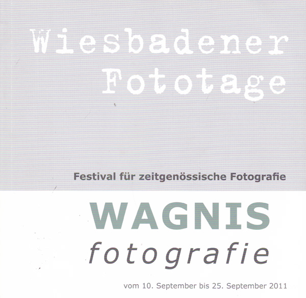 Berg, Reinhard u.a. [Herausgeber]: Wagnis Fotografie. Wiesbadener Fototage Festeval für zeitgenössische Fotografie 10. September bis 25. September 2011. Erste Auflage. Wiesbaden. Photowork. 2011. 21 x 21 cm. 124 S. OKarton. Einbandkanten mit kleinen Bereibungen, Rückendeckel mit schwacher Knickspur. Sonst gutes bis sehr gutes Exemplar. Durchgehend mit photographischen Abbildungen versehen.