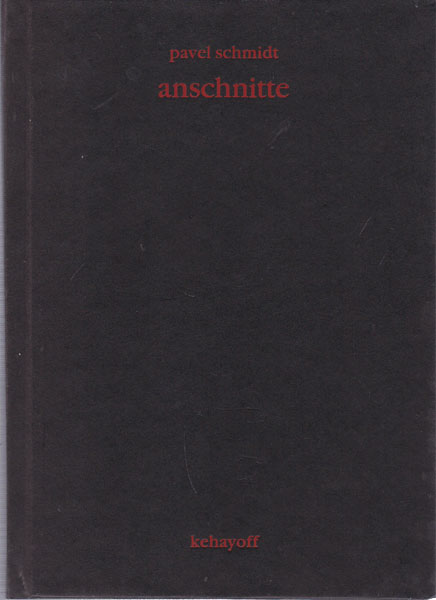 Schmidt, Pavel: anschnitte. Erste Auflage. München/ London/ New York. Verlag Gina Keyahoff. 1999. 17,5 x 12,5 cm. 72 S. OPappband. Einbandkanten mit kleinen Bereibungen. Sonst sehr gutes Exemplar. Durchgehend mit ganzseitigen, zum Teil farbigen Abbildungen versehen.