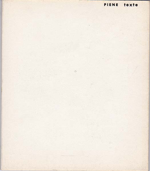 Piene, Otto: 10 Texte. Nota Galerie, März 1961 / Dato Frankfurt, April 1961. 1. Auflage. München. Frankfurt. nota galerie / dato. 1961. 14 x 12 cm. 47 S. OKarton. Umschlag nur wenig angestaubt, sonst sehr gutes Exemplar. Zusammenfassung von Zeitschriften- und Katalogtexten Pienes, unter anderem auch aus Zero 1 und Zero 2, Azimuth 2, Galerie H, Hessenhuis und weiterem.