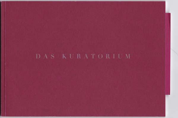 Sturm, Thomas: Das Kuratorium. Auflage 1000 Exemplare. Stuttgart. Akademie Schloß Solitude. 1994. 15 x 21 cm. 29 S., 1 Blatt. OKarton. Sehr gutes Exemplar. Fotoprojekt mit den Kuratoriumsmitgliedern des Schloß Solitude. Durchgehend mit Abbildungen versehen. Gefaltete Karte mit den Fotoabbildungen sowie Legende in Einstecktasche im hinteren Deckel. Beiliegend Einladungskarte zur Eröffnung.