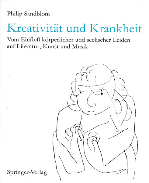 Sandblom, Philip: Kreativität und Krankheit. Vom Einfluß körperlicher und selischer Leiden auf Literatur, Kunst und Musik. Erste Auflage. Berlin. Springer Verla. 1990. 22 x 18 cm. 183 S. OLeinen mit illustriertem OUmschlag. Schutzumschlag mit Bereibungen, kleine Quetschfalte auf der Vorderseite, oberer Rücken etwas knittrig. Sonst gutes Exemplar. Über den Zusammenhang von Kunst und Krankheit durchgehend mit Abbildungen versehen.