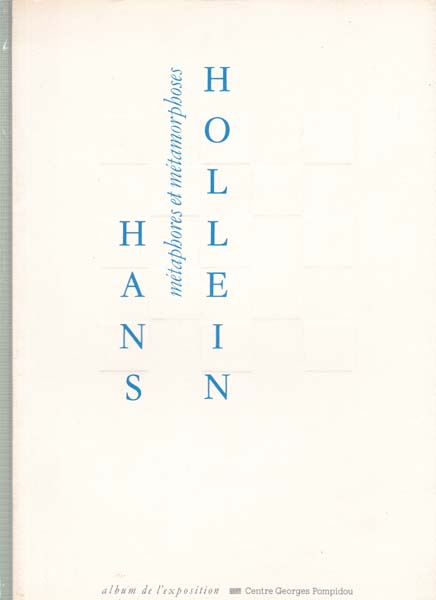 Hollein, Hans: métaphores et métamorphoses. Erste Auflage. Paris. Centre Pompidou. 1987. 30,5 x 21 cm. 32 unpaginierte S. OKarton. Einbandkanten nachgdunkelt und mit kleinen Bereibungen, kleiner privater Eintrag auf dem Titelblatt. Erschienen anlässlich der Ausstellung Paris 18. März bis 8. Juni 1987 durchgehend mit Abbildungen versehen. Text in französischer Sprache.
