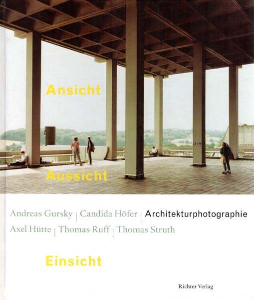 Gursky, Andreas; Höfer, Candida; Hütte, Alex; Ruff, Thomas; Struth, Thomas: Ansicht Aussicht Einsicht. Architekturphotographie. Erste Auflage. Düsseldorf. Richter Verlag. 2000. 29 x 24 cm. 128 S. Illustrierter OPappband. Einband etwas berieben, sonst gutes Exemplar. Museumsausgabe erschienen anlässlich der Ausstellung des Museum Bochum 29. Januar – 12. März 2000 und der Galerie für Zeitgenössische Kunst Leipzig 2. April – 28. Mai 2000. Durchgehend mit farbigen Abbildungen versehen.