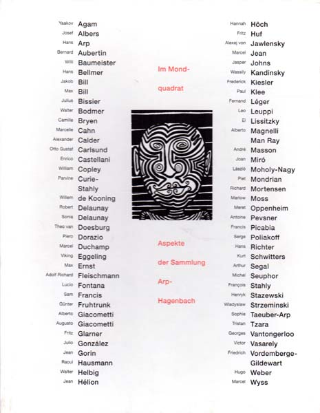 Stooss, Toni [Herausgeber]: Im Mondquadrat. Aspekte der Sammlung Arp-Hagenbach. Erste Auflage. Düsseldorf. Richter Verlag. 2003. 29 x 23 cm. 215 S. Illustrierter OPappband. Umschlag etwas berieben, sonst gutes Exemplar. Erschienen anlässlich der Ausstellung im Museum Liner und in der Kunsthalle Ziegelhütte, Appenzell, vom 26. Oktober 2003 bis 25. Januar 2004. Durchgehend mit farbigen Abbildungen versehen. Mit u.a. Yaakov Agam, Josef Albers, Willem de Kooning, Robert Delaunay, Max Ernst, Alberto Giacometti, Wassily Kandinsky, Meret Oppenheim, Hans Richter, Hugo Weber, uvw.