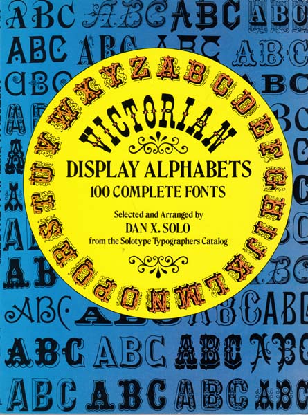 Solo, Dan X.: Victorian Display alphabets. 100 complete fonts. Erste Auflage. New York. Dover Publications. 1976. 28 x 20,5 cm. 100 S. Illustrierter OKarton. Einbandkanten mit kleinen Bereibungen, Blattränder stellenweise etwas nachgedunkelt.Gutes Exemplar. Durchgehend mit ganzseitigen Abbildungen der Schriften versehen!