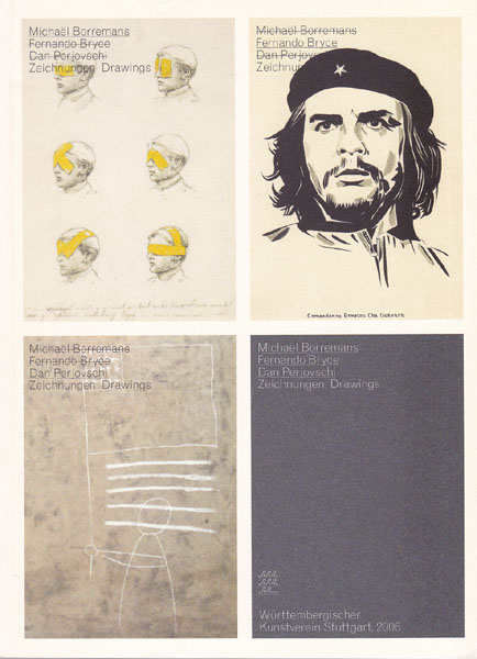 Borremans, Michael – Fernado Bryce/ Dan Perjovschi: Zeichnungen Drawings. Herausgegeben von Hans D. Christ und Iris Dressler. Erste Auflage. Frankfurt am Main. Stuttgart. Revolver Archiv für aktuelle Kunst Frankfurt am Main. Württembergischer Kunstverein Stuttgart. 2006. 23 x 17 cm. 94 S. Illustrierter OKarton. Einbandkanten mit kleinen Bereibungen. Sonst gutes bis sehr gutes Exemplar. Katalog zum Gemeinschaftskatalog Stuttgart 1. April bis 5. Juni 2006 durchgehend mit Abbildungen zum zeichnerischen Werk der 3 Künstler versehen. Tex in deutscher und englischer Sprache.