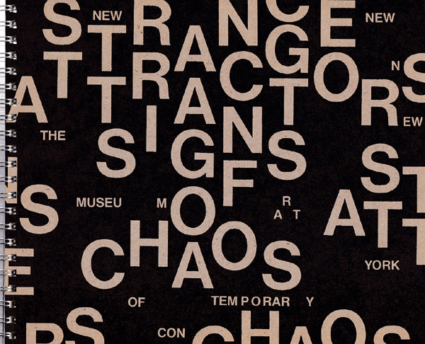 Young, Alice: Strange Attractors: Signs of Chaos. Erste Auflage. New York. The New Museum of Contemporary Art. 1989. 19 x 23,5 cm. 68 unpaginierte S. OPappband mit Spiralbindung. Einbandkanten minimal berieben, sehr leicht angestaubt. Gutes bis sehr gutes Exemplar. Aufwändiger, typographisch gestalteter Katalog zur Ausstellung New York 14. September bis 26. November 1989 mit unterschiedlichen Papierarten und Seitenformaten sowie mit zahlreichen Abbildungen versehen, Unter den teilnehmenden Künstlern waren John Cage, James Welling, Cady Nolasnd, Christian Marclay, Andres Serrano und viele andere. Text in englischer Sprache. Inliegend gefalteter Flyer zum Museumsprogramm. SELTEN!
