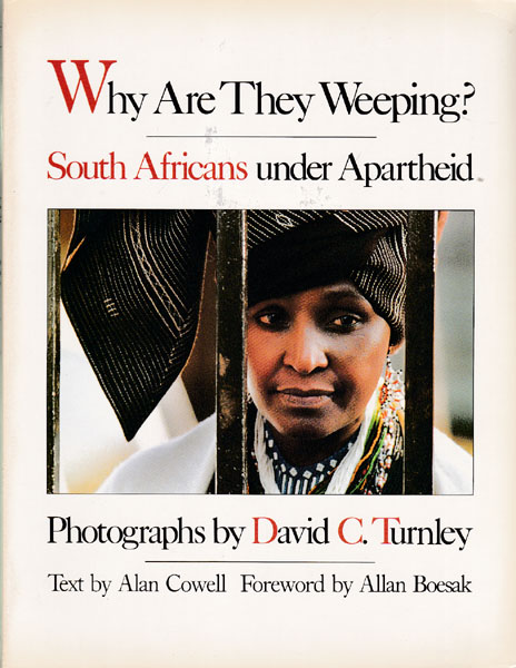 Cowell, Alan: Why are they weeping? South Africans under Apartheid. Erste Auflage. New York. Stewart, Tabori & Chang. 1988. 28 x 22 cm. 185 S., 5 Blatt. Illustrierter OKarton. Einbandkanten etwas nachgedunkelt und berieben, Oberkante des Rückendeckels mit kleiner, beschabter Stelle. Sonst gutes Exemplar. Durchfehend mit ganzseitigen Abbildungen versehen. Text in englischer Sprache.