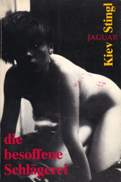 Stingl, Kiev Jaguar: Die besoffene Schlägerei. (La Bataille Ivre). texte, essays, prosapoesie und fotofratzen of jetzt. Erste Auflage. Berlin. Cyrano Verlag. 1994. 21 x 14,5 cm. 96 S., 1 Blatt. Illustrierter OKarton mit Klappenumschlag. Umschlagkanten etwas nachgedunkelt, mit kleinen Randbereibungen, stellenweise minimal beschabt. Sonst gutes Exemplar. Cyrano Buch 6. Durchgehend mit ganzseitigen, fotografischen Abbildungen versehen. Mit eigenhändiger Signatur von Kiev Stingl auf dem vorderen Vorsatzblatt, datiert April 1984.!