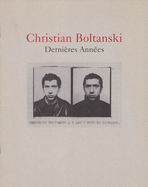 Boltanski, Christian: Dernieres Annees. Erste Auflage. Paris. Musee d’art moderne de la ville de Paris. 1998. 26,5 x 21 cm. 24 unpaginierte S. Illustrierte OBroschur. Einbandkanten etwas nachgedunkelt und mit kleinen Bereibungen. Sonst gutes bis sehr gutes Exemplar. Erschien begleitend zur Ausstellung „Kaddish“, Paris 15. Mai bis 4. Oktober 1998 durchgehend mit schwarz-weissen Abbildungen versehen. Text in englischer und französischer Sprache.