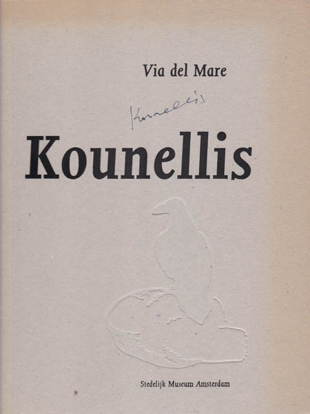 Kounellis, Jannis – Dorine Mignot: Via del Mare. Erste Auflage. Amsterdam. Stedelijk Museum. 1990. 29 x 24 cm: 124 S. OHLeinen mit geprägtem Pappdeckel. Einbandkanten etwas nachgedunkelt und berieben. Sonst gutes bis sehr gutes Exemplar. Katalog zur Ausstellung Amsterdam 24. 11. 1990 bis 13. 1. 1991 durchgehend mit schwarz-weissen Abbildungen, Abbildungsverzeichnis sowie Bio-Bibliographie versehen. Text in niederländischer und englischer Sprache. Mit eigenhändiger Signatur des Künstlers auf dem Vorderdeckel!