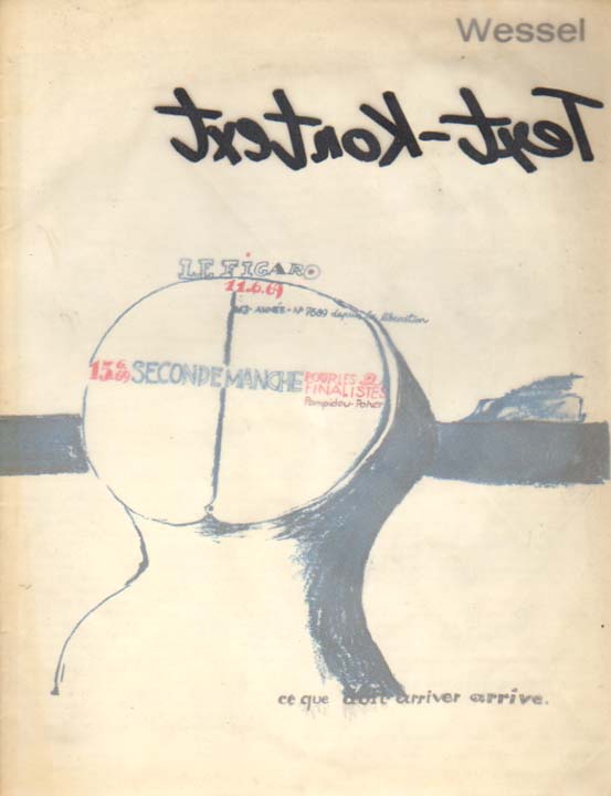 Wessel, Wilhelm: Text – Kontext. Museumsverein Aachen, Städtisches Suermondt-Museum, 4. Juli – 29. August 1971. Erste Ausgabe. Aachen. Museumsverein Aachen, Städtisches Suermondt-Museum. 1971. 27 x 21 cm. 12 unpaginierte Bl. OBroscur mit OFolienumschlag. Folienumschlag gedunkelt und leicht angestaubt, kleine Fehlstelle am hinteren Umschlag. Ordentliches Exemplar. Seltener, schön gestalteter Katalog mit 22 abgebildeten Werken, u.a. Zeichnungen, Textcollagen und Collagen. Nr.12 einer nicht bezeichneten kleinen Auflage.
