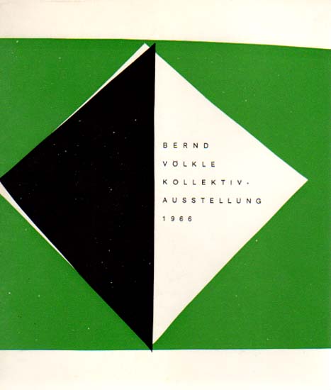 Völkle, Bernd: Ölbilder, Collagen, Gouachen, Farb.– Holzreliefs von 1958 – 1966. Kollektiv – Ausstellung Bernd Völkle. Áusstellung vom 16. Oktober bis 15. November 1966. Unter der Schirmherrschaft des Hessischen Lultusministers Prof. Dr. Ernst Schütte. Erste Auflage. Kassel. Kasseler Kunstverein e.V. 1966. 21 x 18 cm. 20 unpaginierte S. OKarton. Sehr gutes Exemplar. Enthält schwarzweiss Abbildungen von 14 Arbeiten.