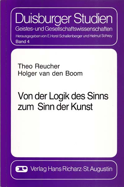 Reucher, Theo – Holger van den Boom [Herausgeber]: Von der Logik des Sinns zum Sinn der Kunst. Erste Auflage. Sankt Augustin. Verlag Hans Richarz. 1981. 24 x 16 cm. 200 S. Illustrierter Okarton. Sehr gutes Exemplar. Duisburger Studien Geistes- und Gesellschaftswissenschaften Band 4.