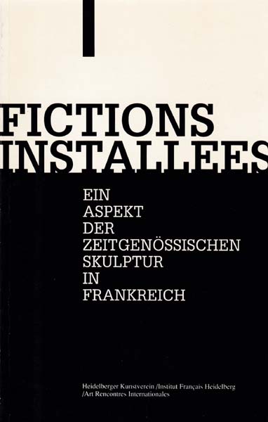 Ponant, Pierre [Herausgeber]: Fictions Installees. Ein Aspekt der zeitgenössischen Skulptur in Frankreich. Auflage 800 Exemplare. Paris. Heidelberg. Art Rencontres Internationales. Heidelberger Kunstverein. 1988. 19 x 12 cm. 81 S. OKarton. Einbandkanten minimal lichtrandig. Sonst sehr gutes Exemplar. Katalog zur Ausstellung Heidelberg 15. April bis 8. Mai 1988. Durchgehend mit Abbildungen der ausgestellten Kunstwerke versehen.