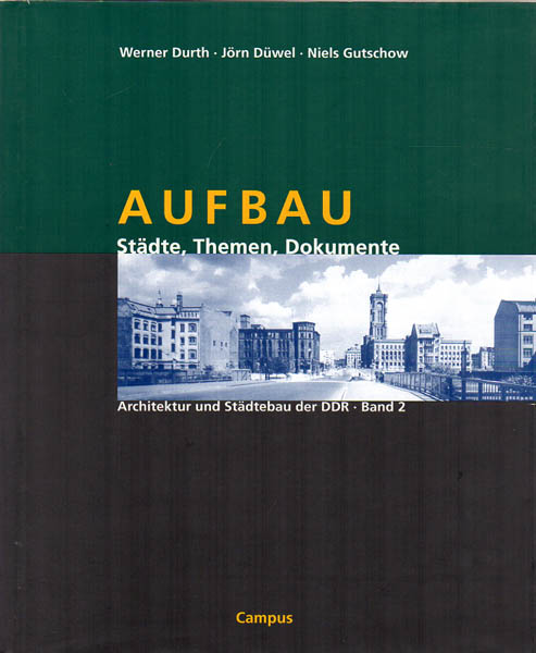 Durth, Werner / Jörn Düwel / Niels Gutschow: Architektur und Städtebau der DDR. Band 1: Ostkreuz. Personen, Pläne, Perspektiven / Band 2: Aufbau. Städte, Themen, Dokumente. Mit Fotos von Stanislaw Klimek. 1. Auflage. 2 Bände. Frankfurt am Main / New York. Campus Verlag. 1998. 30,5 x 25,5 cm. 567 S.(Band 1); 560 S. (Band 2). Illustrierte OPappbände mit illustriertem OUmschlag im Schuber. Fußschnitte jeweils mit Mängelexemplar-Stempelung. Schuberam unteren Steg angeplatzt, teils berieben. Minimale Stauchung an der vorderen unteren Stoßkante von Band 1. Sonst gute Exemplare. Architektur und Städtebau der DDR Durchgehend mit Abbildungen versehen. Mit Beilagen (Zeitungsausschnitte). Standardwerk zur Architekturgeschichte der DDR.
