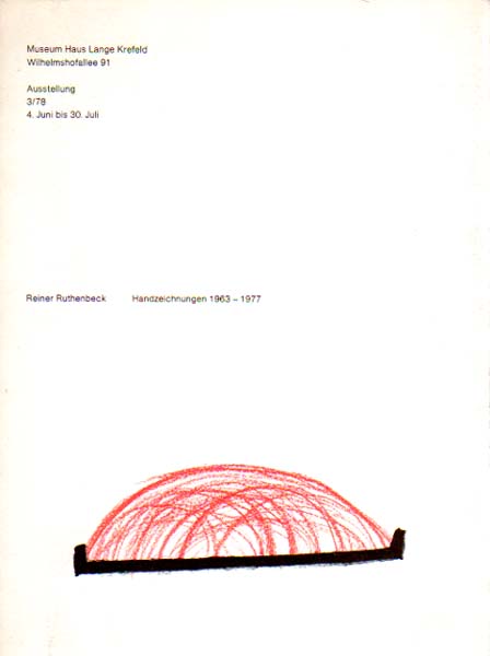 Ruthenbeck, Rainer: Handzeichnungen 1963-1977. Ausstellung 3/78. 4. Juni bis 30. Juli. Museum Haus Lange, Krefeld. Erste Ausgabe. Krefeld. Kaiser Wilhelm Museum. 1978. 23 x 17 cm. 66 unpaginierte S. Illustrierter OKarton mit OUmschlag. Umschlag gering gedunkelt ,etwas angestaubt, sonst gutes Exemplar. Mit Texten von Gerhard Storck zu den hier erstmals vorgestellten 60 Zeichnungen, die der Künstler aus einem Fundus von 300 ausgewählt hatte.
