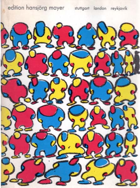 [Roth, Dieter]: edition hansjörg mayer. verlagsverzeichnis 1975. neuerscheinungen und noch erhältliche titel. [Herausgegeben von H. J. Mayer und D. Roth]. [London. Reykjavik.] Edition Hansjörg Mayer. 1975. 23 x 17 cm. [48] S. Farbig illustrierter OKarton. Papier leicht gewellt. Gutes Exemplar. Verlagsverzeichnis mit zahlreichen wiedergegebenen Künstlerbüchern, Katalogbüchern und Multiples von Dieter Roth sowie weiteren Künstlern. Erschien in einer Auflage von 4000 Exemplaren mit einer eingebundenen Offset-Grafik von Dieter Roth sowie einer farbigen Umschlagserigrafie von Emmett Williams.