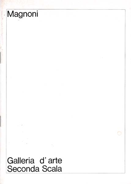 Magnoni, Teodosio – Franco Nonnis [Herausgeber]: Teodosio Magnoni. Erste Auflage. Rom. Galleria Secondo Scala. 1976. 24 x 17 cm. 12 unpaginierte s. OBroschur. Einband etwas lichtrandig, kleiner Fleck auf Vorderdeckel. Sonst gutes Exemplar. Katalog zur Ausstellung Rom Januar bis Februar 1976. Durchgehend mit Abbildungen versehen. Text in italienischer Sprache.