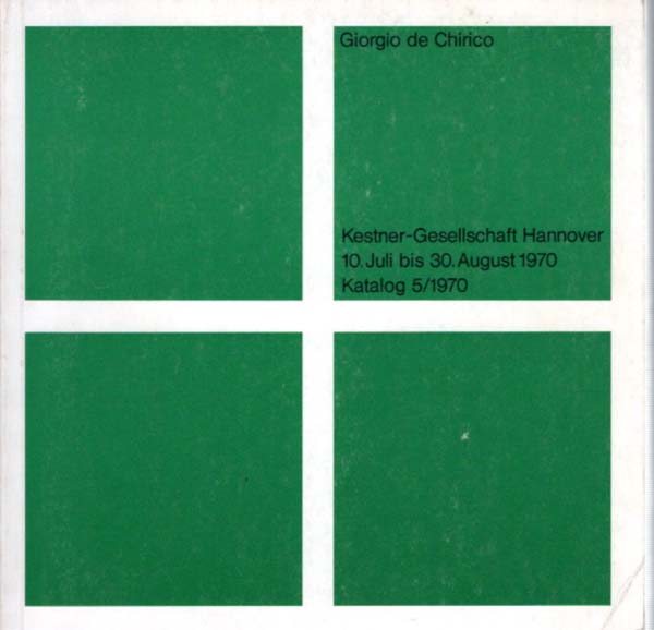 Chirico, Giorgio de: 10. Juli bis 30. August 1970. Katalog 5/1970. Kestner-Gesellschaft Hannover in der Orangerie Herrenhausen. Erste Auflage. Hannover. Kestner Gesellschaft Hannover. 1970. 21 x 21 cm. 240 S. 12 Blatt. OKarton. Umschlag etwas angestaubt, untere vordere Stoßkante etwas gestaucht. Sonst gutes Exemplar. Mit einem Text von Wieland Schmied und zahlreichen, gelegentlich farbigen Abbildungen.