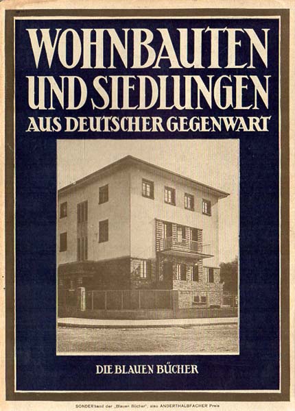 Müller-Wulchow, Walter: Deutsche Baukunst der Gegenwart. Wohnbauten und Siedlungen. Zweite Auflage (13. – 20. Tausend) Königstein im Taunus / Leipzig. Karl Robert Langewiesche Verlag. 1929. 26,7 x 19,1 cm. 126 S. Illustrierter OKarton mit illustriertem OKlappenumschlag. Altersbedingt angestaubt und nachgedunkelt und mit wenigen Randläsuren, wenige Stockfleckchen. Antiquariatsschildchen und Exlibris auf Innendeckel recto. Namenszug auf Vortitel. Sonst gutes Exemplar. Die Blauen Bücher. Durchgehend mit schwarz-weißen Abbildungen versehen.