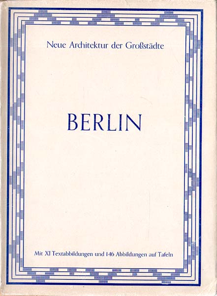 Zahn, L[eopold]. / Hajos, E. M.: Berliner Architektur der Nachkriegszeit. Mit einer Einführung von E. Redslob. Reichskunstwart. Mit XI Textabbildungen und 146 Abbildungen auf Tafeln. Erste Auflage. Berlin. Albertus-Verlag. 1928. 30 x 22,3 cm. 131 S. OKarton mit illustriertem OKlappenumschlag. Umschlag und Einband angestaubt, mit Randläsuren und kleinen Knicken. Bindung gelockert, erste Seiten angelöst. Name auf Innendeckel recto, sonst noch gutes Exemplar. Neue Architektur der Groszstädte. Herausgeber: Dr. Leopold Zahn. Durchgehend mit schwarz-weißen Abbildungen versehen.
