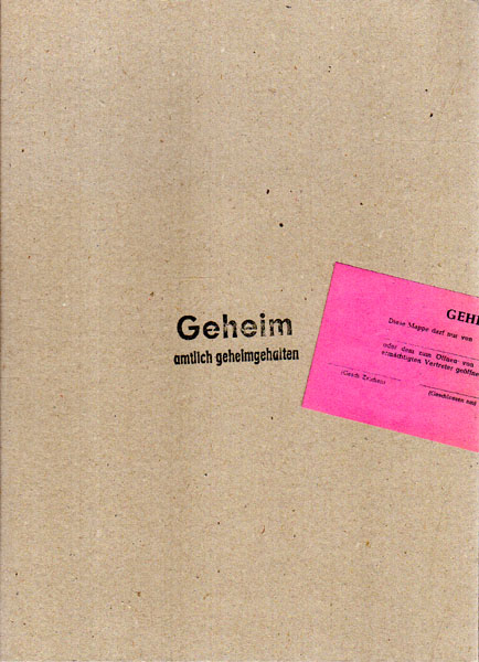 Magdanz, Andreas: Dienststelle Marienthal. Geheim amtlich geheimgehalten. [Faltplakat] (Aachen). (Andreas Magdanz). (2000). 32,5 x 39 cm. 1 Faltbogen. OKarton-Mappe. Verschlusskleber geöffnet, sonst sehr gutes Exemplar. Faltplakat anläßlich der Ausstellung im Rheinischen Landesmuseum Bonn. Zeigt auf der einen Seite ganzseitig eine Innenansicht, verso sind alle ausgestellten Fotoarbeiten zu sehen. Das abgebildete Flugzeug ist dem Umschlag des Buches entlehnt [es handelt sich nicht um die Buchpublikation!]. In Karton-Mappe mit (geöffnetem) Geheimhaltungssiegel-Papier. Die gesamten Rückseite des Faltplakates hat die Abbildung – OP Sanitätsbauwerk, Ost/Ost; Plan- Nr. 29 – [ unserer 2. Abbildung]!
