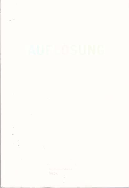 Anders, Friederike – Anke Hoffmann/ Christin Lahr [Herausgeber]: Auflösung. Erste Auflage. Berlin. RealismusStudio NGBK. Vice Versa Verlag. 2006. 24 x 16,5 cm. 125 S. OKarton. Einbandkanten minimal berieben. Sonst gutes Exemplar. Katalog zur dreiteiligen Ausstellungsreihe Berlin 2006. Durchgehend mit Abbildungen versehen.