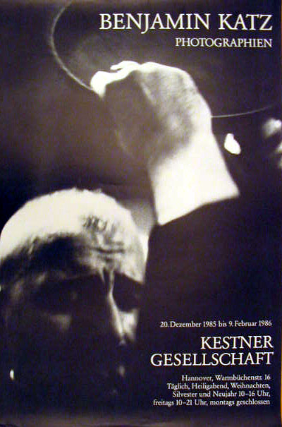 Katz, Benjamin: Photographien. [Plakat] Kestner-Gesellschaft Hannover, 20. Dezember 1985 bis 9. Februar 1986. Hannover. Kestner Gesellschaft. 1985. 84 x 59 cm. Sehr gutes, ungenutztes Exemplar. Foto, etwas verwaschen, Markus Lüpertz hebt den Hut. [Bei Versand von Plakaten in Rollenform erhöhen sich die Versandkosten um 1,50 Euro!]