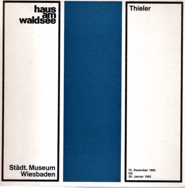 Thieler, Fred: Arbeiten der letzten fünf Jahre. Ölbilder, Gouachen, Zeichnungen, Druckgraphik. Haus am Waldsee, Berlin. 1. Auflage. Berlin. Haus am Waldsee. 1962. 23 x 22 cm. 54 unpaginierte S. OKarton. Umschlag vom Rücken her etwas nachgedunkelt, sonst gutes Exemplar. Enthält eine Einführung von Manfred de la Motte und eine Text von Heinz Ohff sowie Abbildungen und Dokumente.