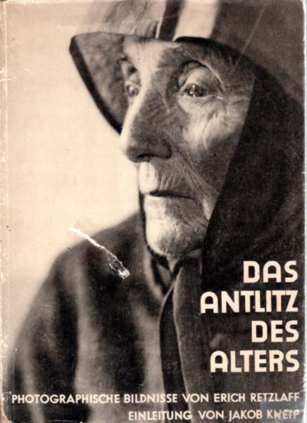 Retzlaff, Erich: Das Antlitz des Alters. Photographische Bildnisse von Erich Retzlaff. Einleitung von Jakob Kneip. Erste Ausgabe. Düsseldorf. Pädagogischer Verlag. 1930. 29,8 x 21,3 cm. 21 S., 47 Tafeln. OKarton mit illustriertem OKlappenumschlag. Umschlag angestaubt, nachgedunkelt, mit Randläsuren, winzigen (geklebten) Fehlstellen und größerem Einriss recto entlang des Buchrückens. Ein Riss mit kleiner Fehlstelle auf dem Umschlag. Ordentliches Exemplar. Durchgehend mit schwarz-weißen Abbildungen versehen. Enthält fotografische Altersporträts von deutschen Personen zwischen 67 und 96 Jahren aus allen Berufsschichten. Umschlagentwurf und Ausstattung Heinz Holzinger, Düsseldorf.