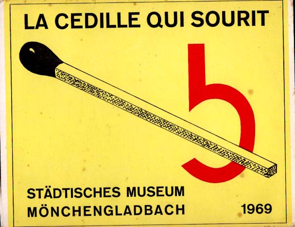 Brecht, George [und] Robert Filliou: La Cedille qui Sourit. Eine Ausstelung in drei Teilen – I: Vorspiel zum Cedille – II: La Cedille qui Sourit – III: Das ständige Geschehen – Was das Cedille sein wird. Städtisches Museum Mönchengladbach, 18. Juni – 27. Juli 1969. Auflage 440 Exemplare. Mönchengladbach. Städtisches Museum. 1969. 20,2 x 16,2 cm. 16 einzelne Karten, 2 Doppelseiten, 1 Heft mit 24 unpaginierten S., eines mit 8 S., ein illustriertes mit 16 S., 1 Karte mit 5 Abrissblättern, 1 Abschlußblatt. OPapp-Schachtel. Deckel gering stockig, sonst sehr gutes Exemplar. Die eingelegten Textkarten im oberen linken Drittel mit Eckausschnitt, darin eingelegt eine original Streichholzschachtel der Marke „Haushaltsware“, in deren Design auch die Schachtel gehalten ist. Die Streichholzbox enthält anstelle der Streichhölzer 4 Metall-Schraubenhaken. Nummer 275 von 440 nummerierten Exemplaren. Dabei die Einladungskarte zur Ausstellung. [Vgl. Buchholz/Magnani:International Index of Multiples, S. 44].