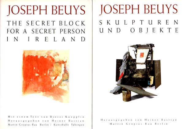 Beuys, Joseph: Skulpturen und Objekte / The secret block for a secret person in Ireland. Martin Gropius Bau, Berlin, 20.2.-1.5.1988. Katalog Band 1: Herausgegeben von Heiner Bastian. Mit Beiträgen von Götz Adriani, Heiner Bastian, Franz Joseph van der Grinten [und einigen anderen]. Katalog Band 2: Text von Dieter Koepplin. Katalogbearbeitung von Celnine Bastian. Herausgegeben von Heiner Bastian. Erste Ausgabe. 2 Bände. München. Schirmer / Mosel Verlag. 1988. 31 x 22 cm. 338; 524 S. OLeinen mit OUmschlag. Umschlag am Steg minimal nachgedunkelt, Band 1 Schnitt etwas nachgedunkelt. Sonst sehr gutes Exemplar. Begleitbuch zur Doppel-Ausstellung im Martin Gropius Bau, Berlin, 20.2.-1.5.1988 in 2 Bänden, in der gebundenen Buchhandelsausgabe. Mit hunderten Abbildungen.