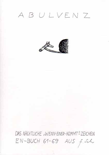 Schwegler, Fritz: Abulvenz. EN 6100-6999. Schluszversammlung. Galerie Schmela, 4. November bis 30. Dezember 1988. 1. Auflage. Düsseldorf. Galerie Schmela. 1988. 30 x 21 cm. 22 unpaginierte S. OKarton. Sehr gutes, frisches Exemplar. Durchgehend mit Abbildungen versehen.
