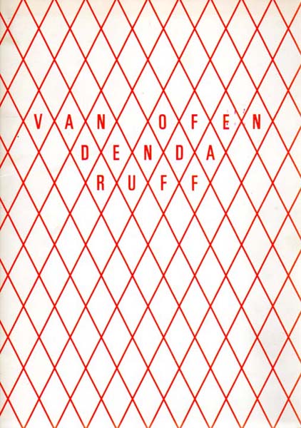 Ruff, Thomas / Elke Denda / Michael van Ofen: Bilder. Elke Denda. Michael van Ofen. Thomas Ruff. Museum Haus Esters, Krefeld, 20. November – 18. Dezember 1988. Erste Auflage. Krefeld. Museum Haus Esters. 1988. 29 x 21 cm. 28 unpaginierte S. OKarton. Ränder am Umschlag gering nachgedunkelt, sonst gutes Exemplar. Mit einem Text von Julian Heynen und 9 farbigen Abbildungen der ausgestellten Arbeiten.