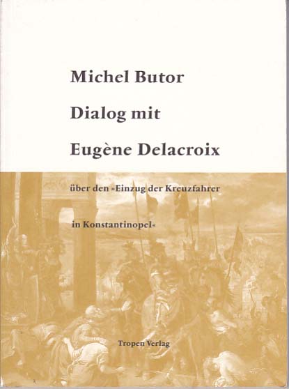 Delacroix, Eugene – Michel Butor: Dialog mit Eugene Delacroix über den „Einzug der Kreuzfahrer in Konstatinopel“. Erste Auflage. Köln. Tropen Verlag. 1998. 19 x 14 cm. 85 S., 1 Blatt. Illustrierter OKarton. Einbandkanten etwas lichtrandig und mit minimalen Bereibungen. Sonst gutes bis sehr gutes Exemplar. Mit einigen Textabbildungen.