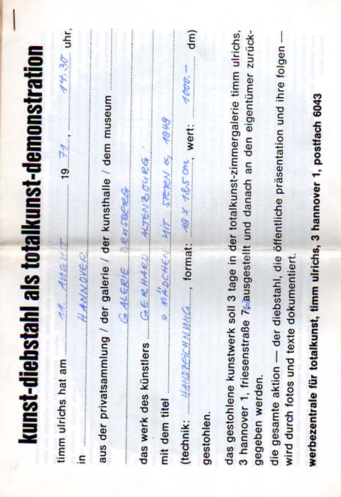 Ulrichs, kunst-diebstahl als totalkunst-demonstration.