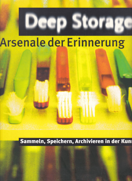 Schafner, Ingrid und Matthias Winzen: Deep Storage. Arsenale der Erinnerung. Sammeln, Speichern, Archivieren in der Kunst. Herausgegeben von Ingrid Schaffner und Matthias Winzen. 1. Auflage. München/ New York. Prestel Verlag. 1997. 30 x 24 cm. 295 S. 3 Blatt. OPappband mit OUmschlag. Sehr gutes Exemplar. Ausstellung im Haus der Kunst München, 3. August – 12. Oktober 1997 [und 3 weitere Stationen]. Hervorragend arrangierte Ausstellung unter dem Aspekt des Archivierens, Konservierens und in Erinnerung halten in der Kunst. Mit zahlreichen (Bild)Beispielen, u.a.v. Arman, Artschwager, B.u.H.Becher, Broodthaers, Christo, Darboven, Gerz, Kawara, Kogler, Manzoni, Paik, Rauschenberg, Spoerri, Warhol. Gebundene Buchhandelsausgabe.