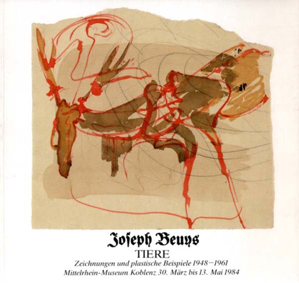 Beuys, Joseph – Franz Joseph van der Grinten (Herausgeber): Tiere. Zeichnungen und plastische Beispiele 1948 – 1961. Mittelrhein-Museum Koblenz, 30. März bis 13. Mai 1984. Erste Auflage. Koblenz. Mittelrhein-Museum. 1984. 21,9 x 23,4 cm. 55 S., 2 Blatt. Illustrierter OKarton. Umschlag gering angestaubt und nachgedunkelt, sonst gutes Exemplar. Durchgehend mit schwarz-weißen Abbildungen versehen.