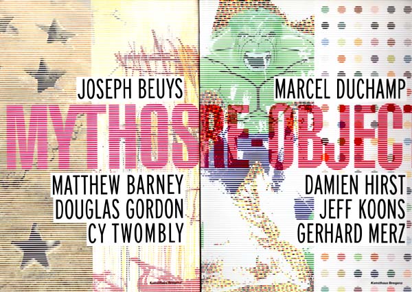 Re-object / Mythos. [Band 1]: Marcel Duchamp – Damien Hirst – Jeff Koons – Gerhard Merz. Mit Beiträgen von Sebastian Egenhofer, John Gray, Gudrun Inboden, Herbert Molderings / [Band 2]: Joseph Beuys – Matthew Barney – Douglas Gordon – Cy Twombly. Mit Beiträgen von David Anfam, Eugen Blume, Keith Hartling, David Joselit, Bernd Roeck, Uwe M. Schneede, Guido de Werd. Auflage 2000. 2 Bände. Köln. Buchhandlung König. 2007. 31 x 23 cm. 187; 191 S. OPappband mit OUmschlag. Sehr gutes Exemplar. Erschienen anlässlich der Ausstellung „Re-Object“ und „Mythos“ 18. Februar bis 13. Mai 2007 und 2. Juni bis 9. September 2007, Kunsthaus Bregenz. Durchgehend mit farbigen Abbildungen versehen. Beiliegend zwei Begleithefte zur Ausstellung, eine Einladung anläßlich des zehnjährigen Bestehens des Museums Kunsthaus Bregenz sowie ein Zeitungsartikel.
