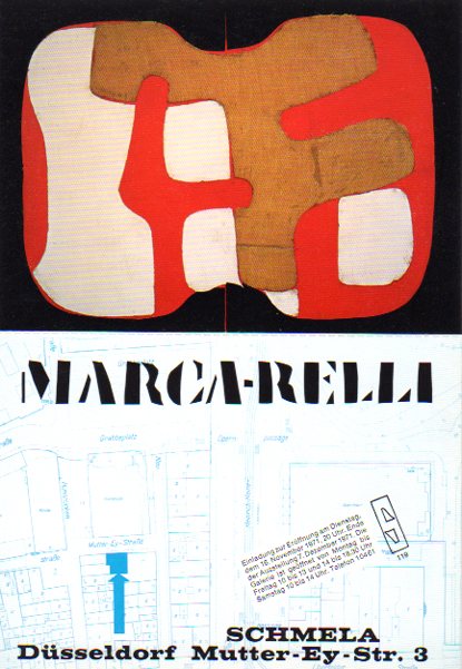 Marca-Relli, [Conrad]: Marca-Relli. [Einladung] Galerie Schmela, Düsseldorf,16. November 1971. Düsseldorf. Galerie Schmela. 1971. 21 x 15 cm. Tadelloses Exemplar. [Galerie Schmela, Ausstellung 119]. Zweiteilige Einladungskarte mit Perforationslinie. [Vgl. Alfred Schmela, Wegbereiter der Avantgarde, S. 73, Nr. 119].