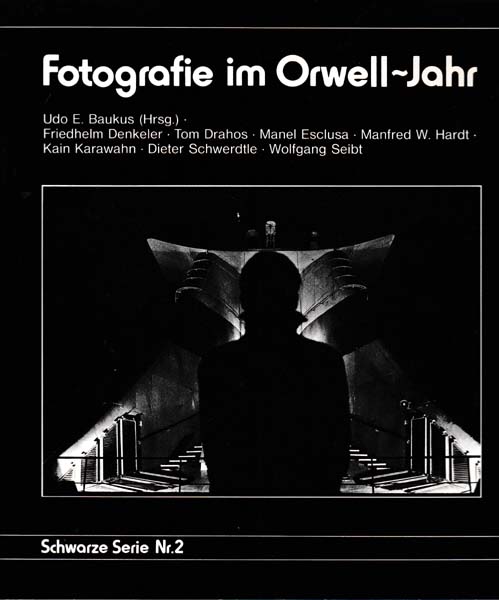 Baukus, Udo E. [Herausgeber]: Fotografie im Orwell-Jahr. Friedhelm Denkeler, Tom Drahos, Manel Esclusa, Manfred W. Hardt, Kain Karawahn, Dieter Schwerdtle, Wolfgang Seibt. Erste Auflage. Göttingen / Zürich. Muster-Schmidt-Verlag. 1984. 26 x 26 cmcm. 86 S., überwiegend Ill. OKarton mit illustriertem OKlappenumschlag. Umschlag etwas berieben und mit winzigem Einriss, sonst gutes Exemplar. Schwarze Serie; Nr. 2. Durchgehend mit s/w Abbildungen versehen.