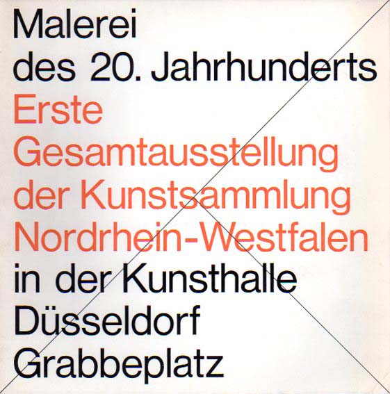 Malerei des 20. Jahrhunderts. Erste Gesamtausstellung der Kunstsammlung Nordrhein-Westfalen in der Kunsthalle Düsseldorf. 26. Mai bis 7. Juli 1968. Erste Auflage. Düsseldorf. Städtische Kunsthalle. 1968. 20 x 20 cm. 44 S. OKarton. Einband minimal lichtrandig, sonst gutes Exemplar. Mit Textbeiträgen von Karl Ruhrberg und Werner Schmalenbach. Enthält 182 s/w Abbildungen.